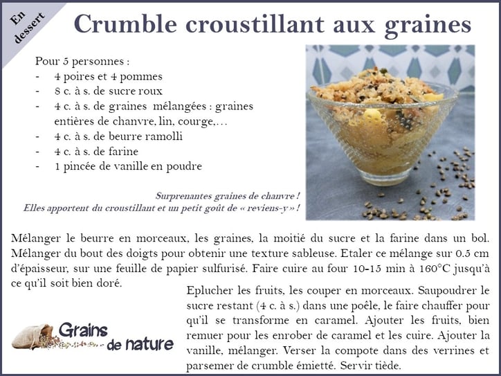 Croustillant et avec un goût de graines torréfiées : ce crumble si simple à préparer vous surprendra. Et surtout, son petit goût de "reviens-y" ne vous lâchera pas !